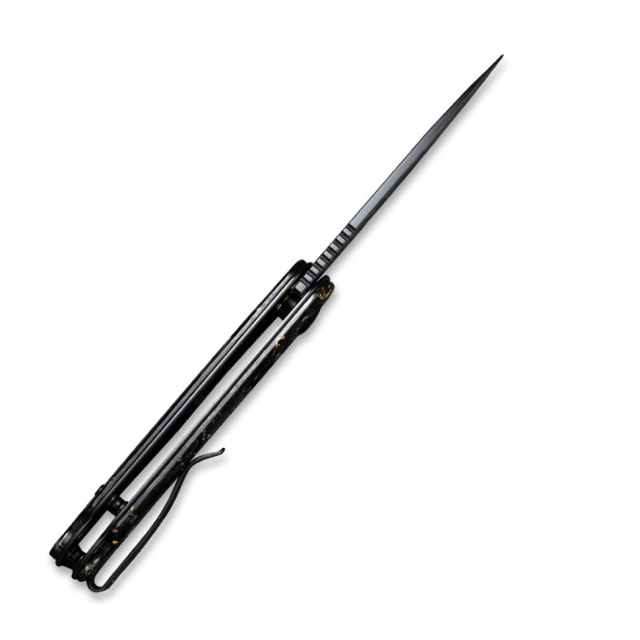 Плавное открывание клинка обеспечивается благодаря керамическим шариковщикам в основе конструкции. Чтобы открыть лезвие к фиксации, достаточно нажать на плавник из нержавеющей стали. Нож открывается с характерным щелчком, что указывает на готовность инструмента к работе. В качестве запорного механизма используется замок Liner Lock.