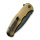 Нож открывается с помощью фронтального флиппера одним нажатием пальца. За плавность движения клинка отвечают керамические подшипники. В отличие от стальных, они обеспечивают более мягкое и надежное открытие без необходимости частого обслуживания. Система фиксации — замок Liner Lock.