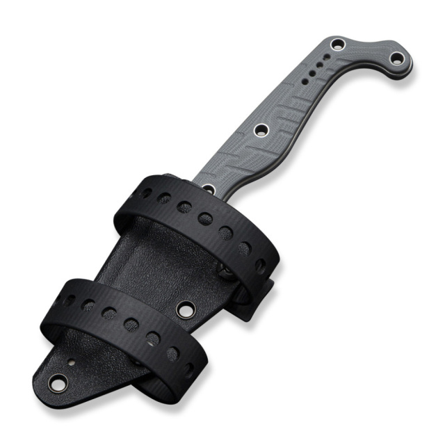 Накладки G10 по обе стороны рукояти. Многослойный композит устойчив к влаге и износу, не впитывает воду и сохраняет целостность при механических воздействиях. Сквозка по краям обеспечивают комфортный хват без давления на ладонь. Сквозные отверстия делают нож легче и позволяют крепить его на снаряжении в различных положениях.