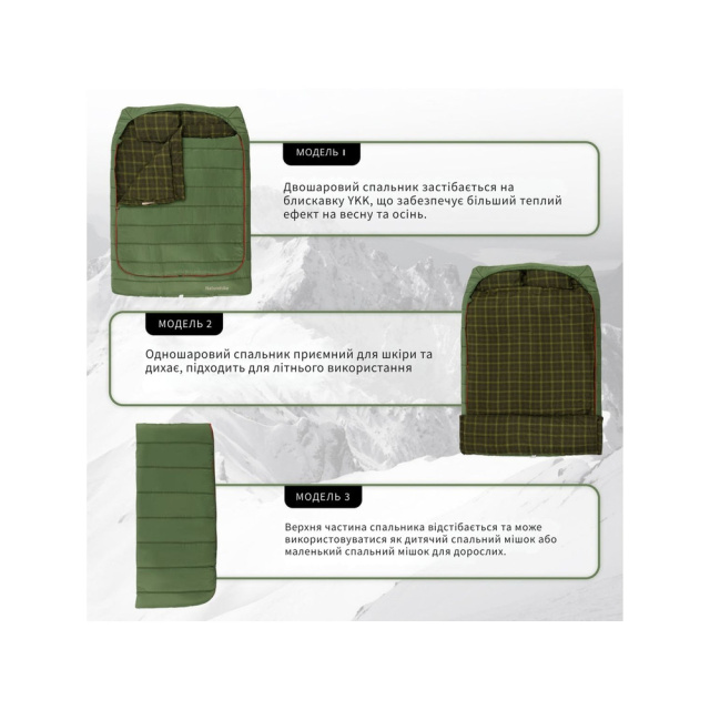 Описание двухместного спального мешка с подушками Naturehike CNK2350WS019, зеленого: