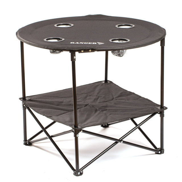 Стільниця виготовлена з міцного поліестеру Оксфорд, з додатковим просоченням, яке робить тканину водонепроникненною. Не піддається впливу УФ-променям, не вигоряє, буде довгий час мати приємний зовнішній вигляд. Має круглу форму, що дуже зручно при розташувані 4-х осіб, ніхто нікому не буде заважати і зручно знаходитись довколо. В столі розташовані 4 підсклянника для напоїв.