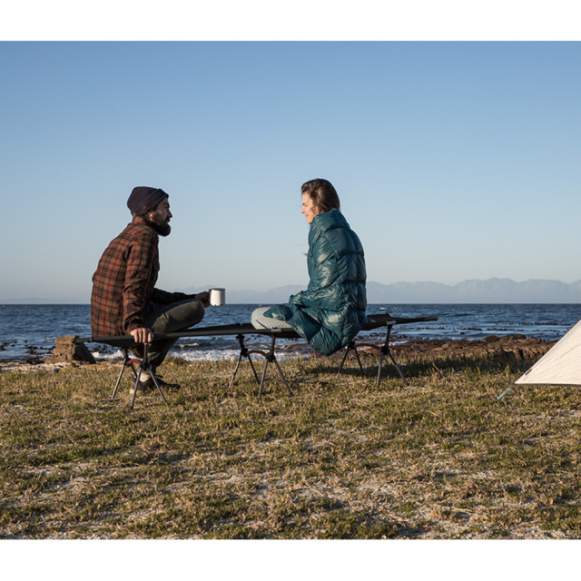 Складной каркас выполнен из алюминиевого сплава 7075 с нержавеющими свойствами. Прочные алюминиевые трубы невосприимчивы к механическим повреждениям и рассчитаны на нагрузка до 150 кг без риска деформаций. Высоту кровати можно регулировать по своему усмотрению: 17 см или 38 см.