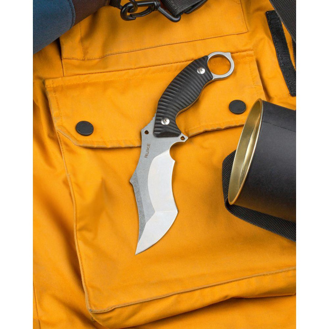 Нож Ruike F181 представляет собой модель с фиксированным клинком. Это нож разновидности «керамбит», лезвие которого имеет сложную форму, предназначенную для тактики. Замерник представлен в двух вариантах цвета, черном и песочном. Модель базируется на уже знакомом потребителях ножи P881, сложного типа.