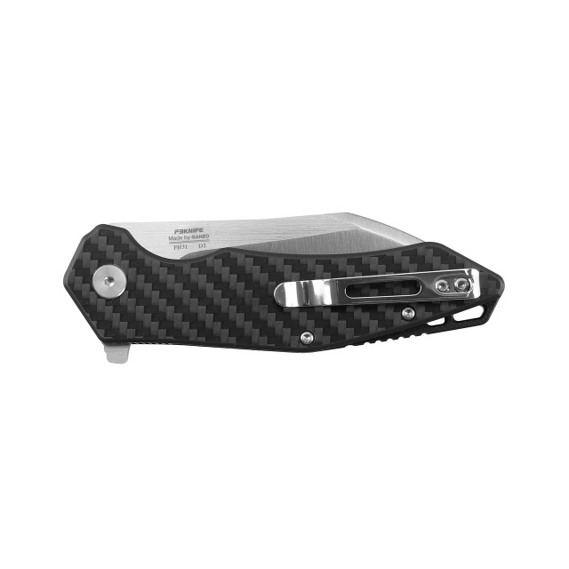 Рукоятка ножа Firebird FH31 CF изготовлена из карбонового композитного материала. Он напоминает пластик, но отличается особой плетеной структурой, большей прочностью. Карбоновый композит не впитывает воду, легко переносит воздействие морозов и длительное пребывание на солнце. Он также легко формируется, за счет чего для ножа Firebird FH31 CF удалось создать очень удобную по форме рукоятку. К ней прикреплена стальная клипса, которую запросто можно переставить на обратную сторону рукоятки. Также производители сделали в ручке ножа пару отверстий, чтобы к нему было легко прикрепить темляк.