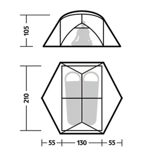 Внешний тент из нейлона 15D с силиконовым слоем. Материал отличается легкостью и устойчивостью к механическим повреждениям. Силикон придает дополнительную водостойкость (1500 мм вод. ст.), противостоит намоканию во время кратковременных осадков, росы и тумана.