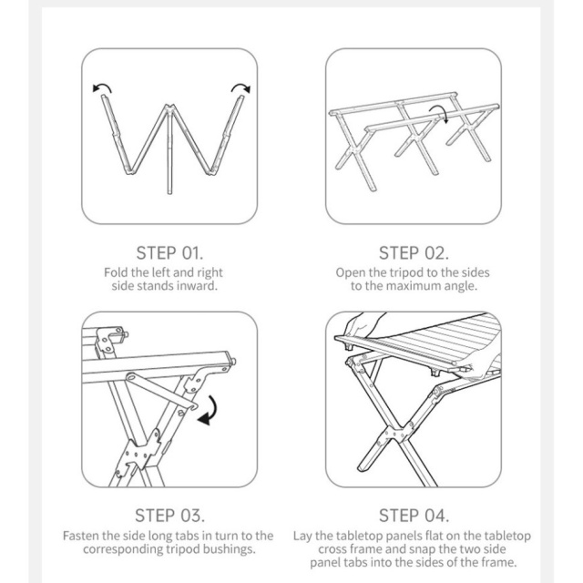Установка очень проста: разложите каркас и зафиксируйте столешницу сверху. Этот процесс занимает буквально пару минут и не требует наличия дополнительных инструментов.