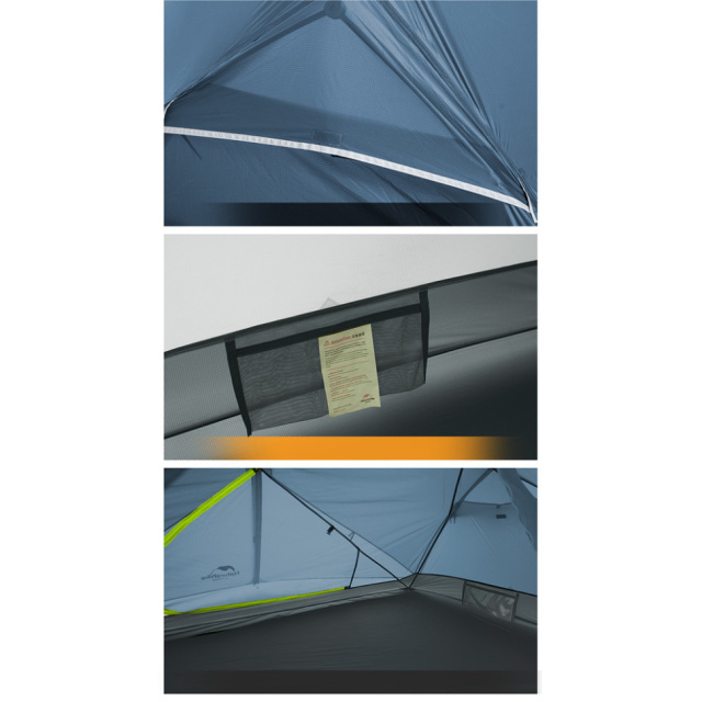 Конструкция палатки Naturehike Mongar состоит из 2-х отдельных частей: внутренней палатки с сеткой и внешнего тента, устойчивого к дождю, ветру и солнцу. В теплое время года можно использовать только внутреннюю часть – спать под звездным небом и наслаждаться прохладой. Тент при необходимости превращается в отдельный навес, когда нужно организовать тень или укрытие для отдыха.