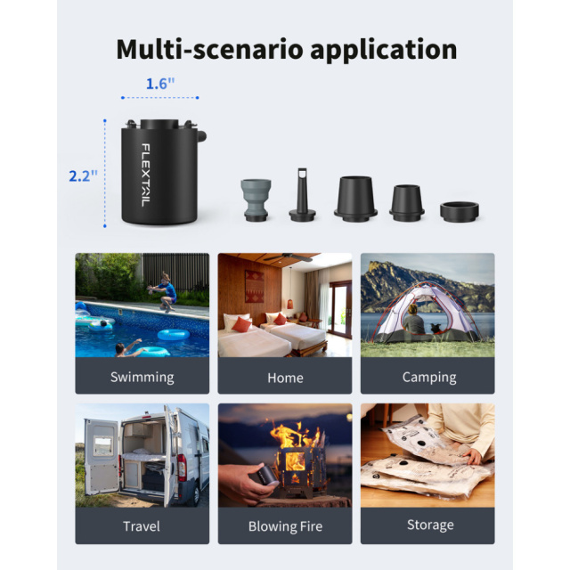 Аккумуляторный насос Flextail Tiny Pump подходит для накачки и сдувания туристических матрасов, подушек, вакуумных пакетов и т.д. Его также можно использовать для разжигания костра.
