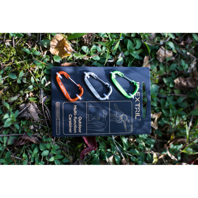 Описание набора алюминиевых карабинов Flextail, 3 шт (серый, оранжевый, зеленый):