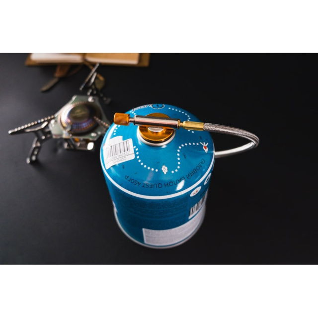 Описание набора газовая горелка титановая BRS-3000T + газовый баллон резьбовой бутановый Quest, 450гр: