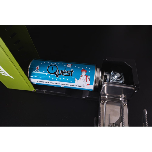 Цанговый баллон Quest 220 г заправлен очищенным бутаном, актуальным для использования при температуре от -2°C и выше. Корпус изготовлен из сверхпрочного сплава и обеспечивает безопасность под давлением.