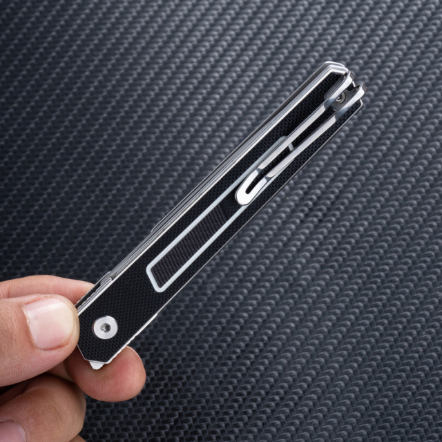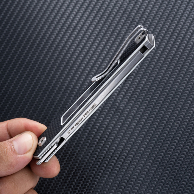 С правой стороны рукоятка закреплена клипсу Tip-Up. Зажим предусматривает незаметное ношение инструмента, позволяя полностью спрятать его в кармане.