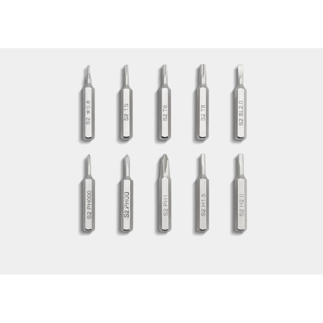 13 функций. Электрический битодержатель, острогубцы, обычные плоскогубцы, кусачки для твердой и многожильной проволоки, нож с прямой заточкой, ножницы, крестовая отвертка, плоская отвертка, монтажный рычаг, открывалка для бутылок, открывалка для консервов, лезвие для резка упаковок. Битодержатель работает с комплектом из 10 прецизионных бит S2 (PH1, PH00, PH000, T8, T6, T5, 0.8, H2.0, H1.5, SL2.0). Біти є в комплекті.