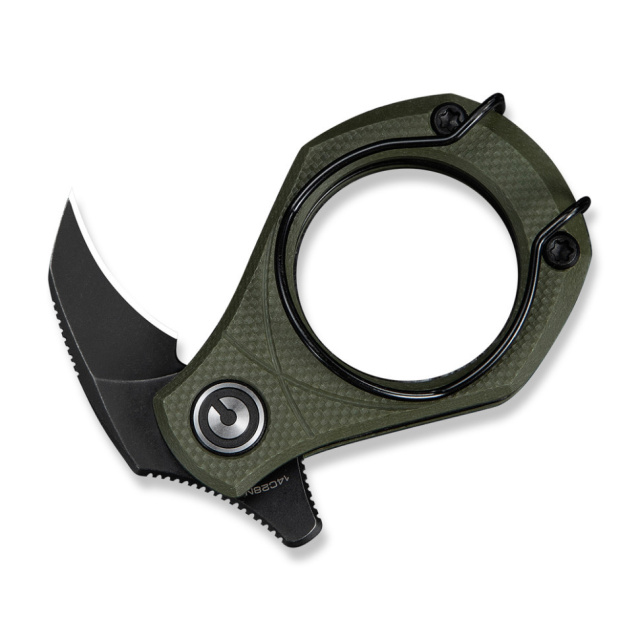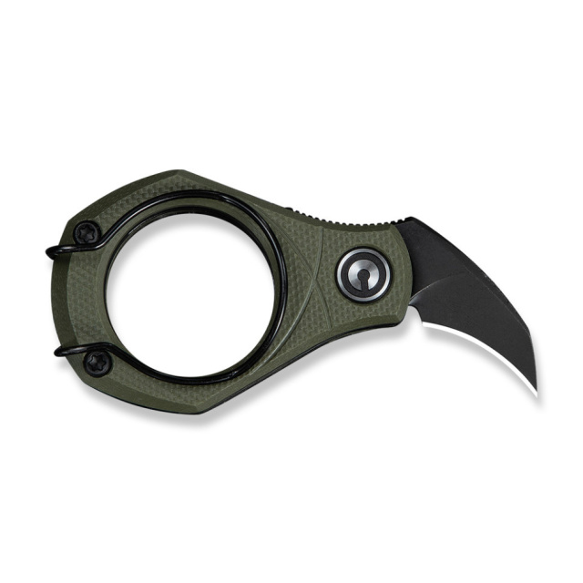 Клинок форми Hawkbill (изогнутый коготь) имеет длину 16,4 мм. Такая форма идеально подходит для разрезания плотных материалов. Изогнутое острие «вгрызается» в упаковку, картон или веревку, не давая лезвию соскользнуть. Толщина обуха составляет 2.2 мм, что обеспечивает достаточную жесткость для силового нажатия во время работы.
