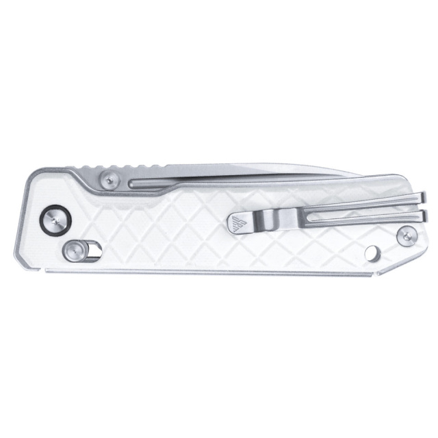 Для ношения на кармане и экипировке предусмотрено двухпозиционную Ambi-клипсу из стали. Зажим можно ставить на любую сторону рукоятки. Также есть отверстие для темляка.