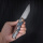 Для открытия ножа достаточно нажать одним пальцем на двусторонней шпенек, который одинаково удобен для взаимодействия правой и левой рукой. Керамические подшипники делают движение лезвия плавным и предсказуемым.