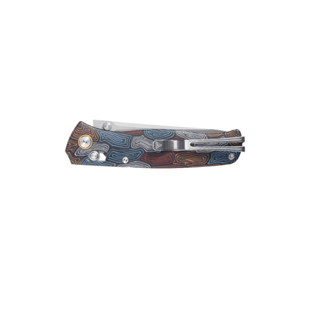 Одна из особенностей ножа — цветная рукоятка. Яркие узоры придают инструменту премиальный вид, благодаря чему он станет эстетичным пополнением коллекции ценителей оригинальных ножей.