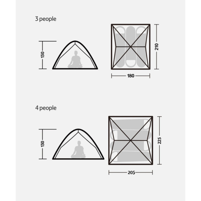 Палатка NH21ZP008 в установленном положении имеет размеры 210 x 180 x 130 см. Этого достаточно, чтобы внутри одновременно расположилось до 3-х человек. В сложенном виде габариты модели не превышают 78 х 18 х 28 см. Комплект поставки включает синтетический чехол оснащен двумя ручками для удобной транспортировки. Вес палатки равен 3.6 кг.
